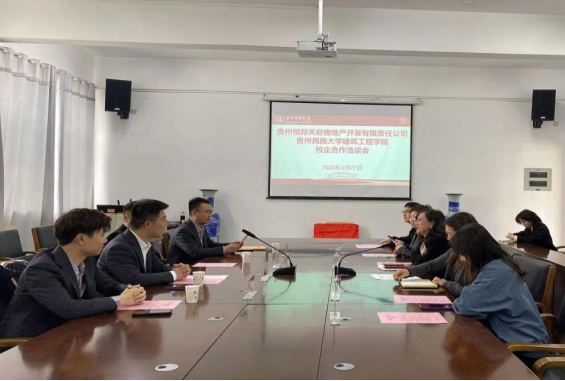 为进一步落实2023届高校毕业生春季促就业攻坚行动,加强校企战略合作,深化产教融合发展, 3月27日上午,beats365唯一官方网站与贵州恒邦天府房地产开发有限责任公司校企合作洽谈会在建工公司A504会议室顺利举行。四川恒邦天府集团贵州区总经理范紫微、营销中心总经理鲁赟、人力资源部部长叶嘉文、行政部部长刘峰瑜,建筑工程公司党委书记何璘、建筑与规划系主任舒净、系副主任陈玫、办公室负责人余进江出席会议,会议由公司党委副书记陆忠婷主持。