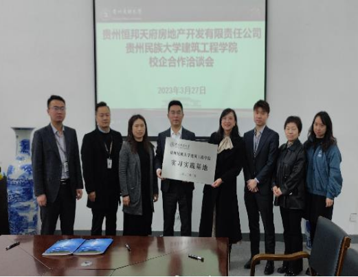 何璘书记与范紫微总经理代表校企双方共同签署了合作协议,并进行公司实习实践基地的授牌。会后,贵州恒邦天府房地产开发有限责任公司对前来应聘的同学一一进行现场面试。