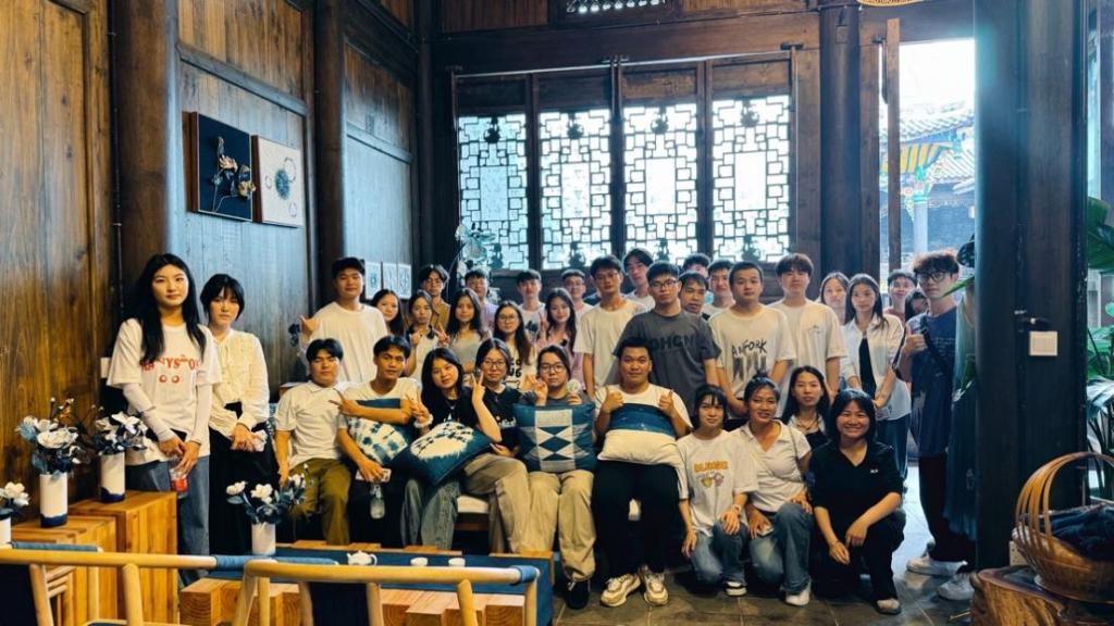 6月24日,师生先后来到榕江县青于蓝蓝染艺术中心、千匠百工木构基地和倚山人工作室参观学习。贵州榕江素有“中国蓝染之乡”的美誉,自2023年以来,贵州“村超”足球赛事火爆全网,当地蓝染刺绣产业借助“村超”的东风,走出了一条非遗变国潮的创新发展之路,让这项古老的非遗技艺焕发新生。通过实地参观蓝染艺术和木构建筑的产业基地及创作中心,让师生更加直观了解贵州少数民族文化遗产的价值,更加深刻理解产业振兴是增强农业农村内生发展动力的源泉,是乡村全面振兴的基础和关键。师生团队意识到,只有实现乡村产业振兴,才能不断完善农业产业链,培育农业产业新业态,拓宽农民收入渠道。