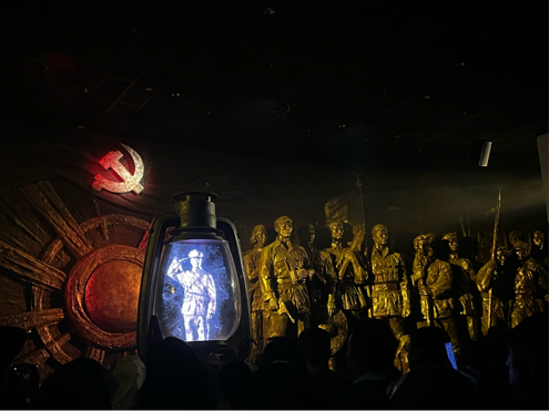 在工作人员的带领下,全体师生党员走进了《红飘带·伟大征程》中,以无名英雄、血火洗礼、伟大转折、砥砺征途、胜利丰碑以及新时代新长征六个篇章组成,层层递进,用多重叙事角度再现长征的伟大史诗。全体师生党员在科技的引领下,重温那段光辉的历史,感受那份不朽的精神。这让大家更加珍惜今天的和平生活,也更加坚定了为祖国的繁荣富强贡献力量的信念。