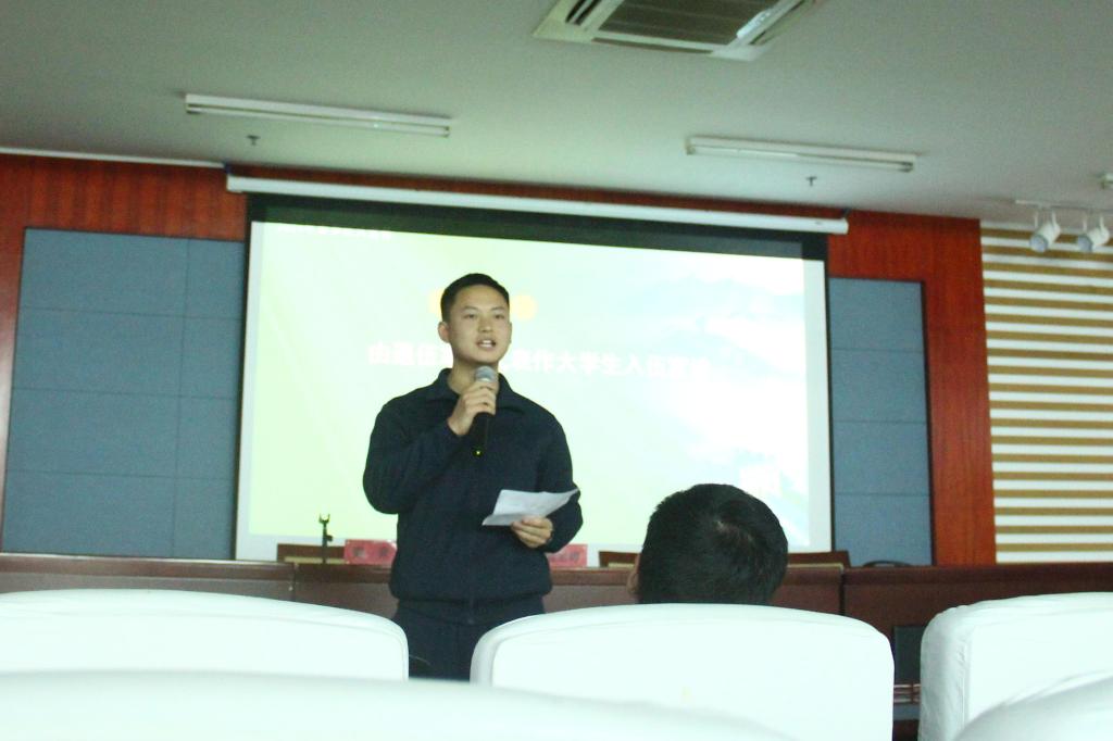 会议伊始,主持人周泉老师介绍了出席会议的人员。随后,全体参会人员起立,奏唱《义勇军进行曲》,激昂的旋律拉开了动员大会的序幕。会上,退伍军人代表作老员工入伍宣讲,他们结合自身的军旅生活,讲述了入伍对个人成长和国家责任的重要意义。退伍老兵们还讲述了各自的入伍经历,他们丰富的故事让在场的毕业生们深受触动。