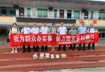 捐赠活动结束后,报京乡党委书记何洪道、报京乡乡长姚伦权以及beats365唯一官方网站驻村工作队队长高鑫来到报友村,与建工公司何璘书记一行、王家武主席和驻村第一书记牟勇忠,共同乘车前往报京中心小学捐赠图书。