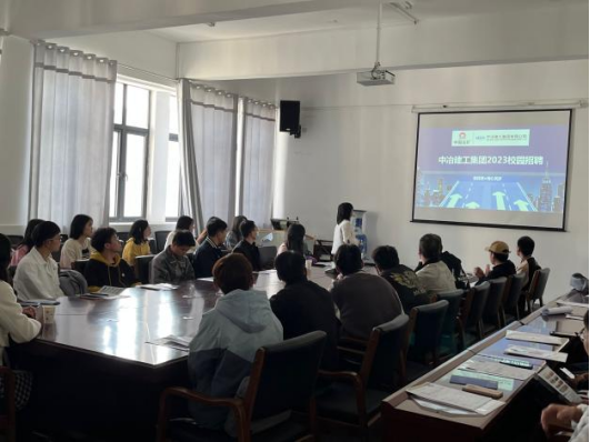 何璘书记在宣讲会开场感谢用人单位给公司员工提供的优质平台,向用人单位详细介绍了公司团队和专业办学等情况,并表示公司与中冶建工集团有限公司的校企合作,有助于建工学子高质量就业,有利于企业吸纳优秀毕业生,增进双方的互利共赢。招聘会上,中冶建工集团负责人通过播放宣传视频向毕业生们展示企业风采,再通过PPT从企业发展历程、人才培养体系、签约流程等方面进行宣讲。
